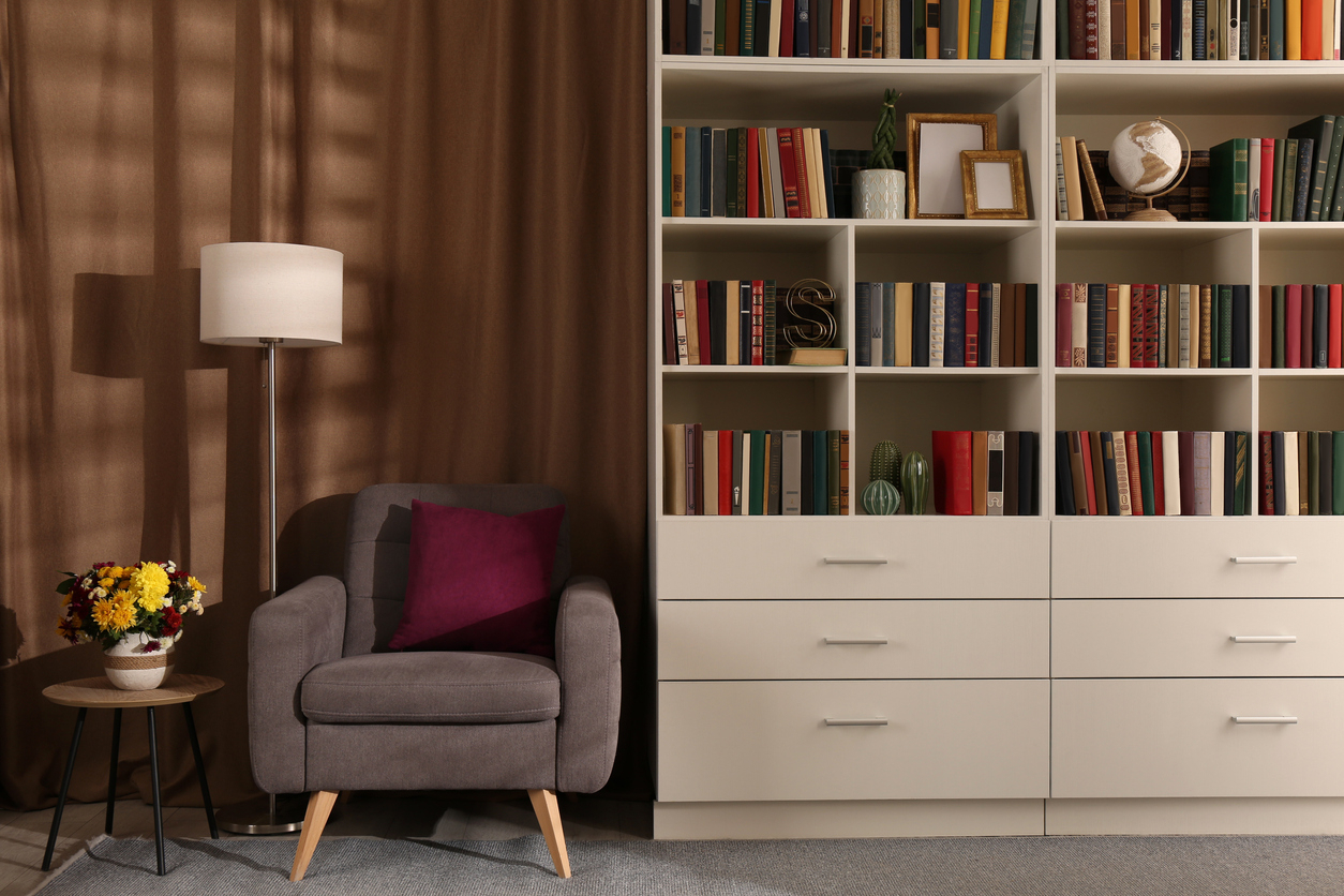 La bibliothèque ne doit pas seulement vous permettre de placer vos livres. Elle contribue de près à l’ambiance dans le salon, c’est pourquoi elle doit s’adapter à la déco de la pièce. Le choix de sa taille, sa forme, son matériau ou encore sa couleur ne doit donc pas se faire au hasard.