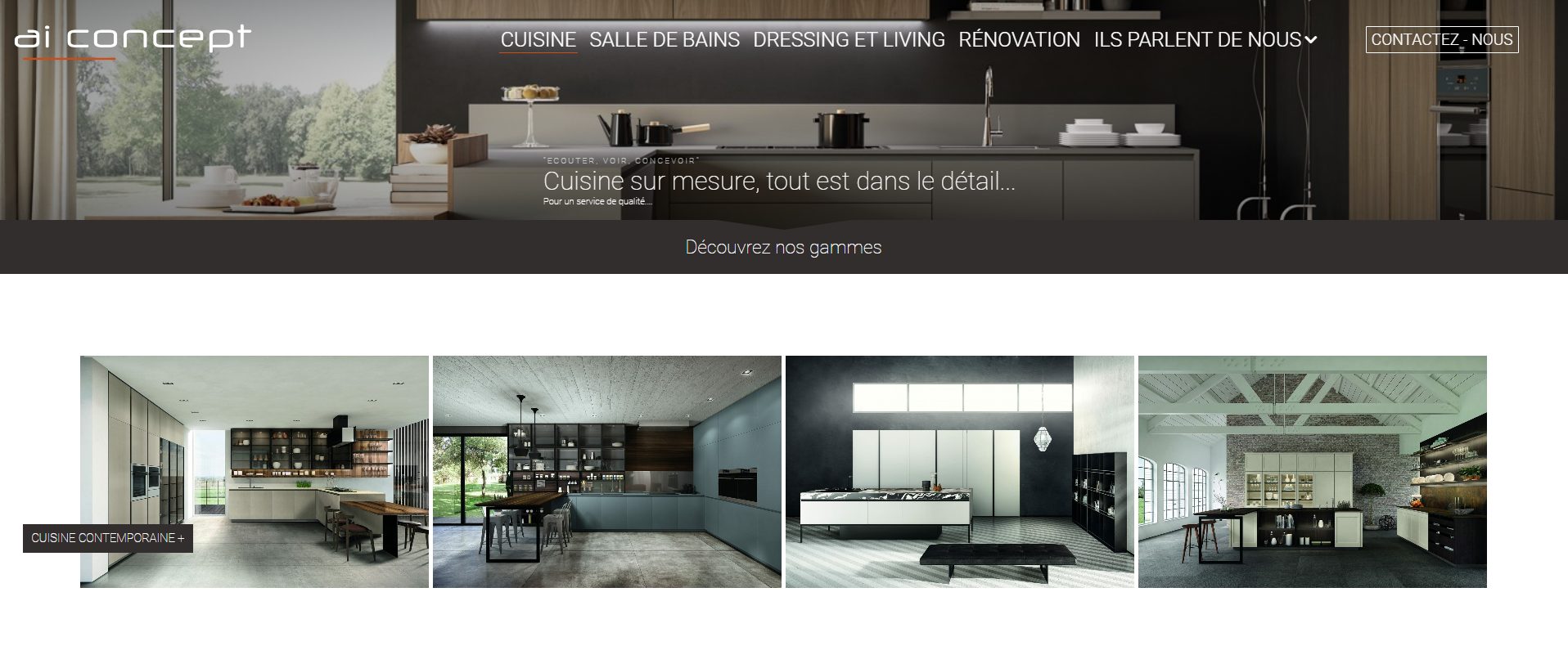 Ai Concept est une entreprise spécialisée dans l’aménagement intérieur, que ce soit pour la construction ou rénovation de cuisine, de salle de bain, de salle de séjour ou encore de garde-robe. Cette enseigne est notamment connue pour la conception de ses cuisines haut de gamme qui sont à la fois fonctionnelles et confortables. Ce sont des professionnels qui ne laissent rien au hasard, leur devise est « écouter, voir et concevoir ». Ils prennent soin d’écouter les moindres détails, et demandes du client pour visualiser les travaux à réaliser pour la création (tout ce qui est choix des matériaux, l’esthétique, la durée de la conception, etc.), de se déplacer pour voir le site en question et prendre les mesures nécessaires, et donner des conseils pertinents si besoin, et enfin de concevoir. En-dehors de cette devise, l’entreprise est transparente envers le client pendant la durée de la construction ainsi que sur les éventuels problèmes rencontrés. Le cuisiniste Ai concept vous fournira un devis détaillé, ainsi que le planning détaillé pour chaque intervention durant les travaux et il fera une visite de chantier une fois par semaine pour le suivi.